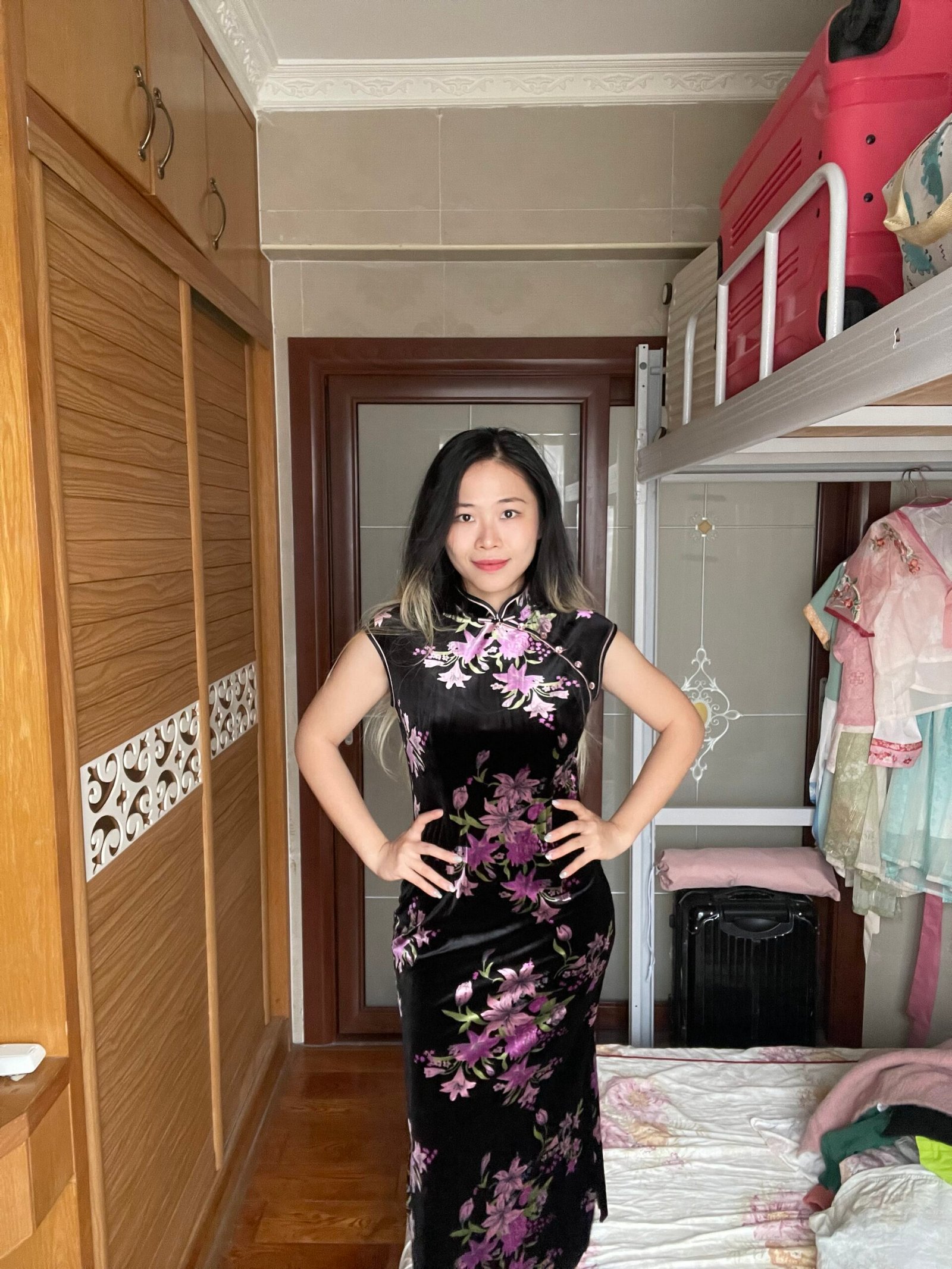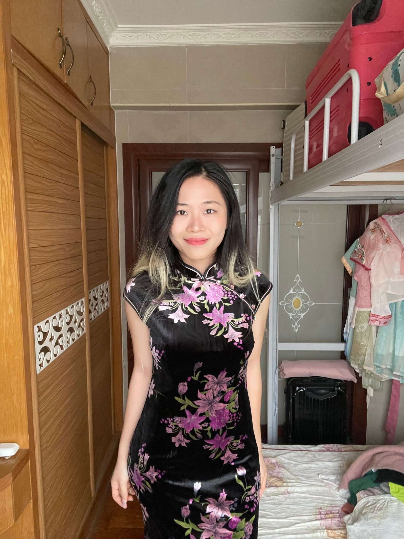 成为第一个“Black Velvet Purple Lily Cap Sleeve Qipao Dress” 的评价者